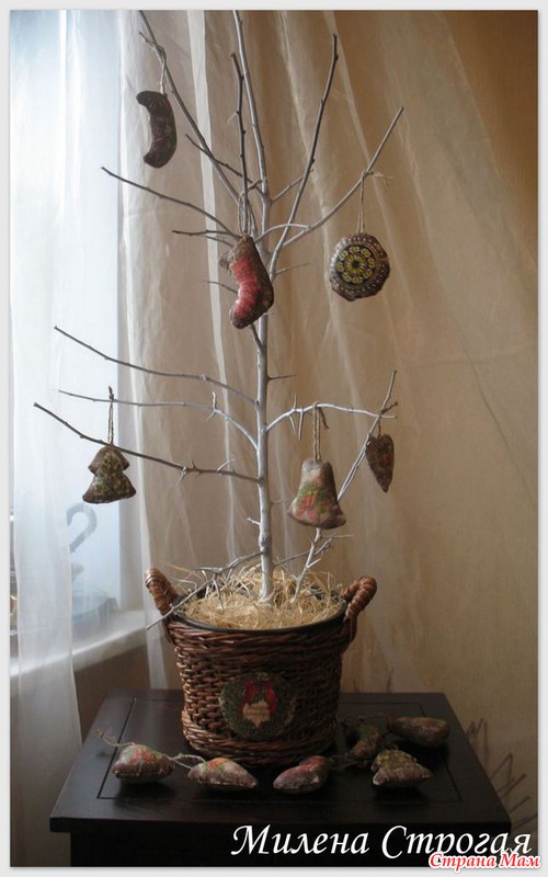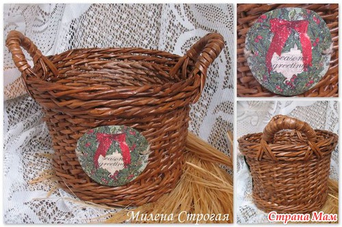 Сделала такую корзинульку в качестве кашпо для новогодней ёлочки: