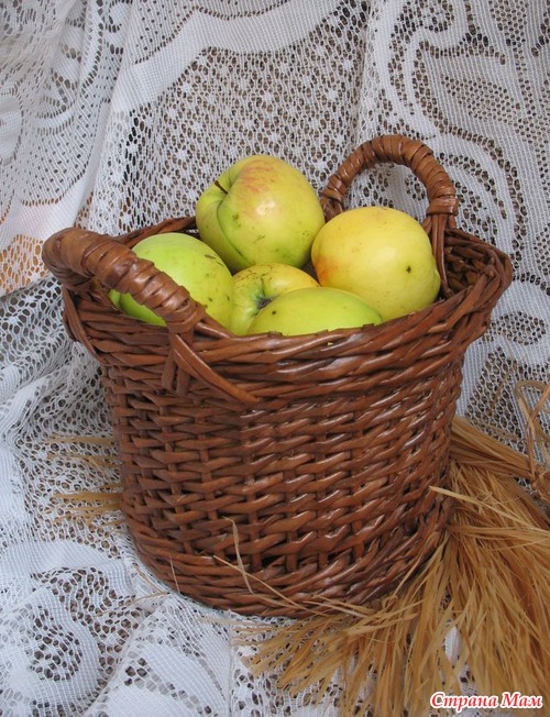 В работе использовано "послойное плетение". Своего МК нет, но в интернете найти можно. Окрашена корзинка водной морилкой "мокко", Покрыта двумя слоями акрилового полуматового лака.