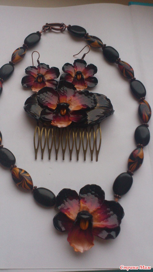 Приветствую всех-всех! Хочу вам показать свою последнюю работу, комплект украшений с орхидеей. Вдохновили меня работы известной многим мастерицы, Юлии Галущак, в жж. Орхидею лепила в первый раз. А теперь, фото