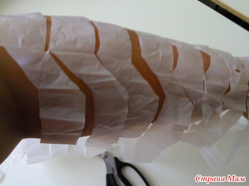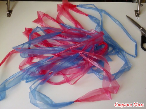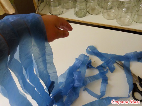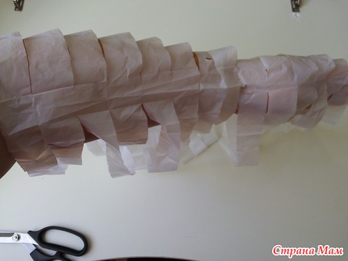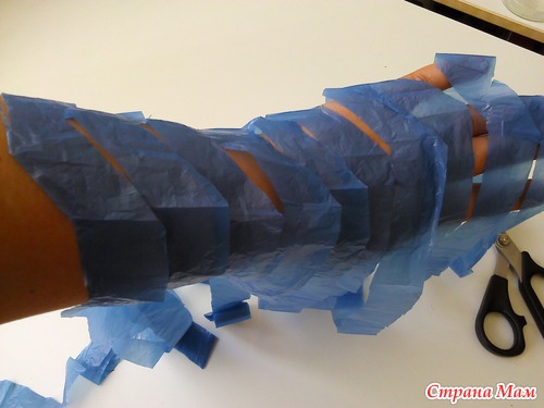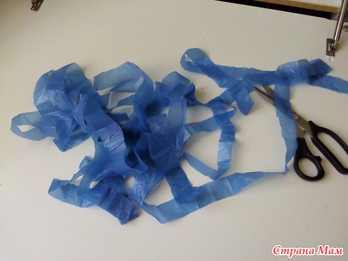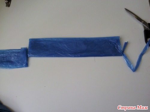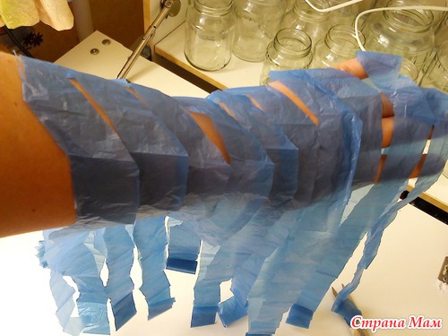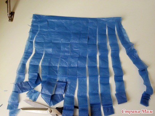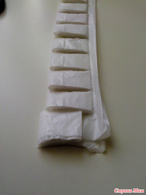 После чего у вас получается одна непрерывная полоса "пакетной пряжи"