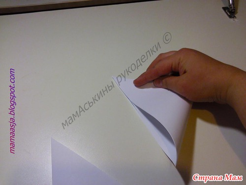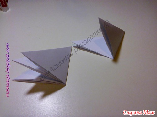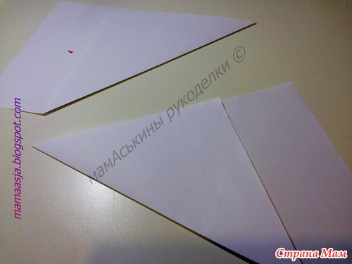 Теперь, получившиеся два сложенных по диагонали квадрата, еще раз складываем пополам.