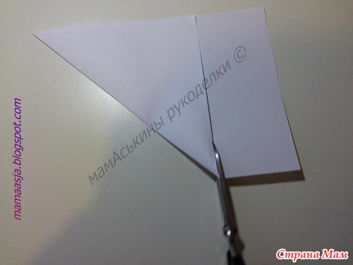 Для начала из прямоугольных листов формата А4 нам нужно сделать два квадрата. Для чего мы складываем лист по диагонали и отрезаем лишнее: