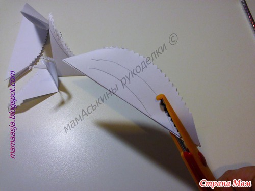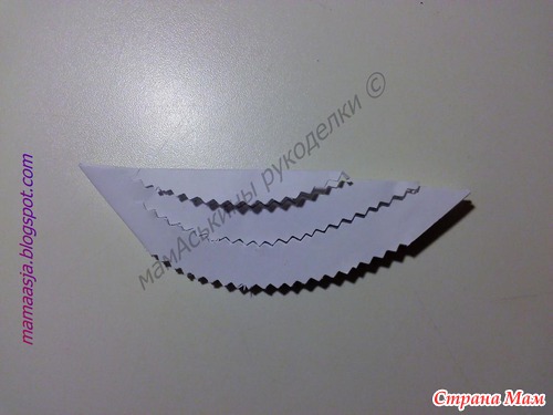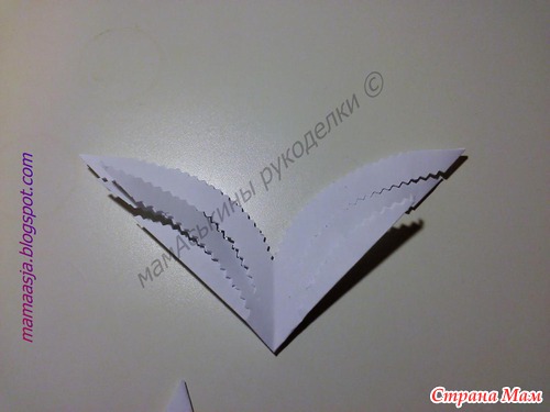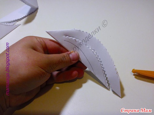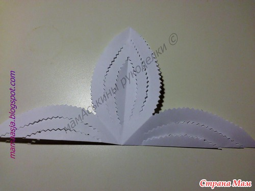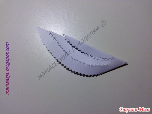 Получился вот такой лепесток, в котором нужно наметить еще две линии разреза, вот таким образом (обязательно не дорезая до конца)