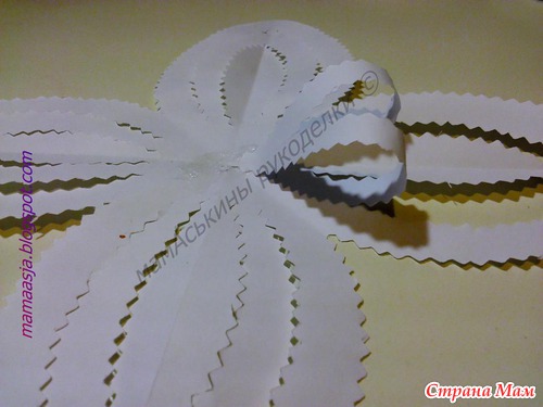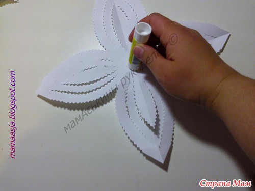 И приклеиваем среднюю полоску каждого лепестка к центру