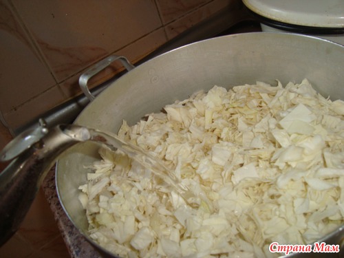 Добавим в капусте, солим, уже вода уходит, и выключаем. даем остыть.