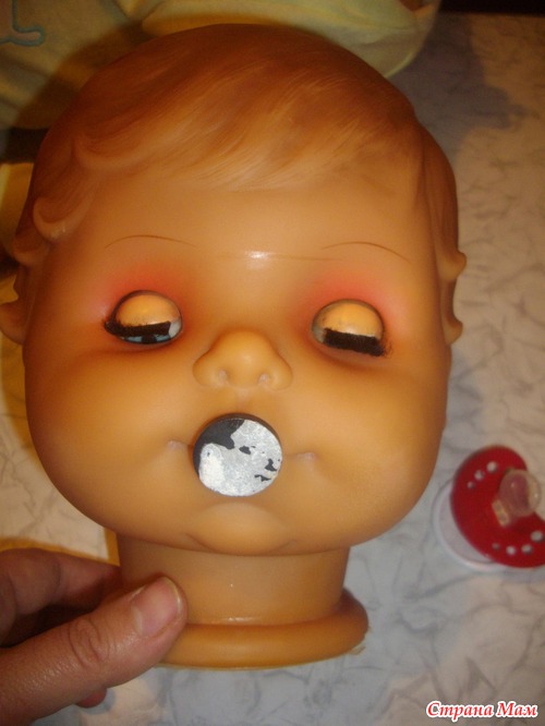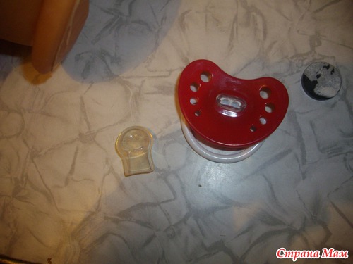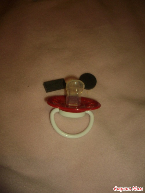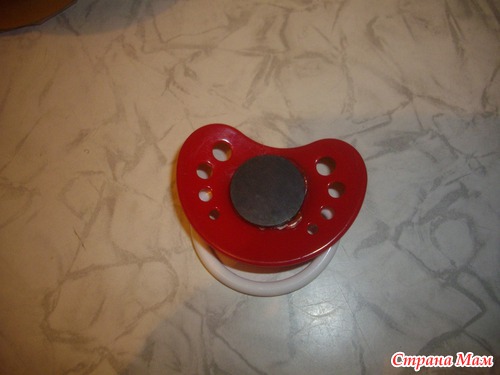 и мы сделали для неё соску, нам понадобились 2 магнита, соска и клей,