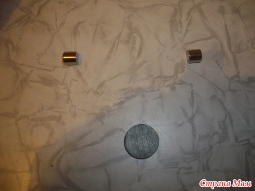 потом подобрали сторону второго магнита, который сцепляеться с тем обозначили краской