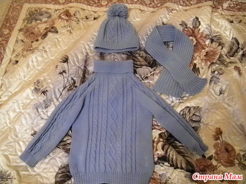 Связала свитер шапочку и шарф младшему сынуле. Вязала из пряжи Кутнор Мартине, Италия 100% экстрафайн меринос. шерсть. Рисунок брала из головы, поэтому схем нет. Принимаю любую критику и похвалу. Спасибо что заглянули.