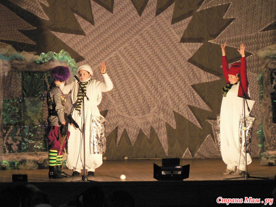 В этом году нам не достались билеты на нее. Вполне пристойную постановку в прошедшую пятницу мы с малышом смотрели в ДК Милиции. Там два веселых снеговичка отправились на поиски нового года.