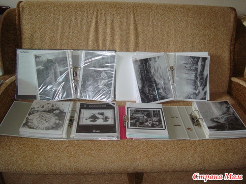 А вот это и есть мои настоящие закрома - 5 папок распечатанных схем, правда в ч/б варианте, но мне так удобнее, т. к. я ориентируюсь по значкам, а не по цвету.