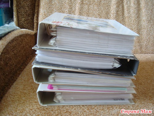 А вот это и есть мои настоящие закрома - 5 папок распечатанных схем, правда в ч/б варианте, но мне так удобнее, т. к. я ориентируюсь по значкам, а не по цвету.
