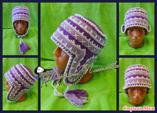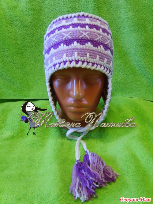 Представляю, свою последнюю работу, шапочка "Ушаночка". Автор идеи Юлия Кирьянова, с её разрешения, я связала свой вариант.