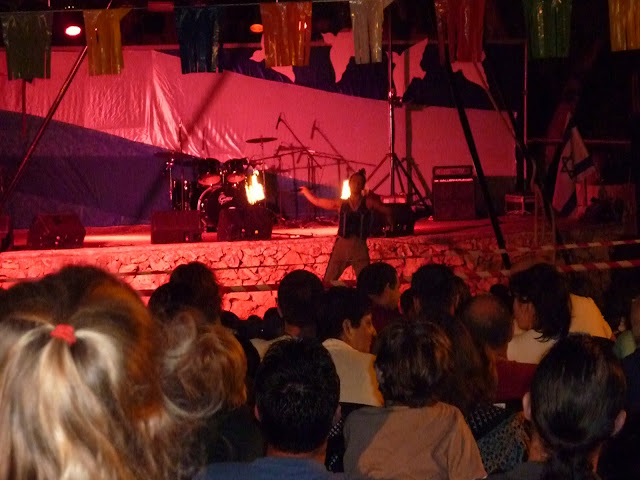 Это сцена, на которой сначала, пока люди собираются, поют патриотические песни, потом обычно выступают акробаты, фокусники, клоуны, ну а потом уже - мошавные рок-группы.