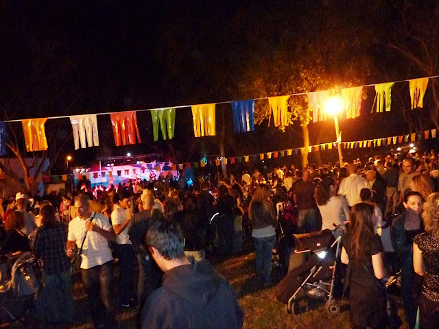 У нас празднование проходило в центе мошава. Там есть такое место, которое смешно называется - "Большая трава". Имеется в виду большая лужайка. Пришли мы туда вечером, предварительно отоспавшись днём, так как развлечения после 9 вечера для нас - серьёзное испытание.