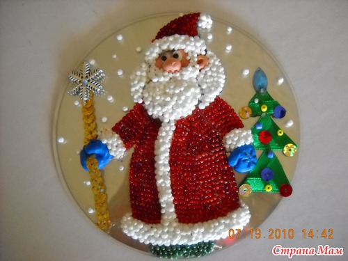 Клей ПВА. Бисер по одному иголкой (пенопласт тоже) выкладывала на смазанный клеем диск. Сначала наносится рисунок на диск маркером или фломастером. По рисунку выкладывается материал.