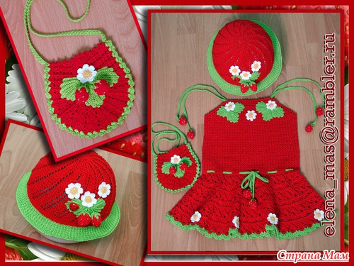 Не так давно выставляла я свою клубничку. Вчера связалась к ней сумочка. Теперь комплектик пополнился.