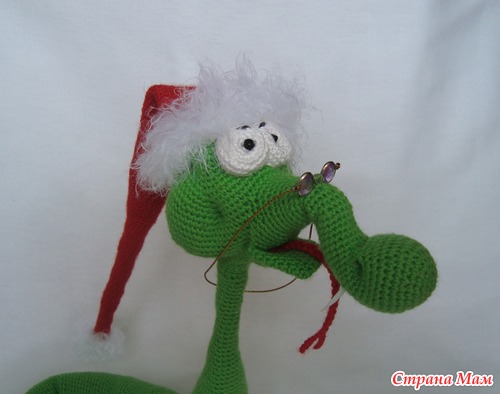 Вот такого зелёного змея, который смотрит на мир сквозь розовые очки я связала