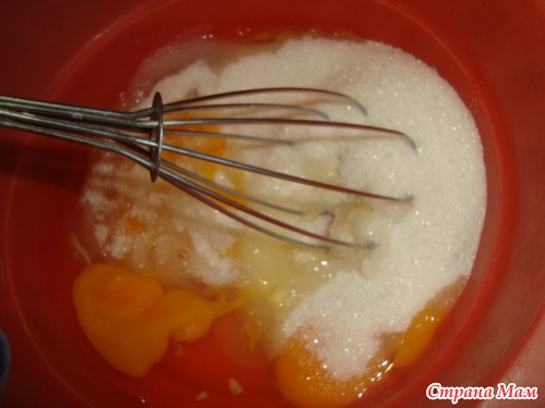 3 яйца сбила с 1 стаканам сахара, миксером мне не охота было. а вы если хотите миксером делайте лучше