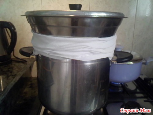 Ставим на кастрюлю с кипящей водой или бульоном с томатной пастой, закрываем крышкой и готовим в течении 20 мин.