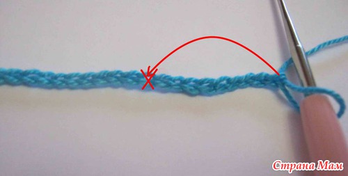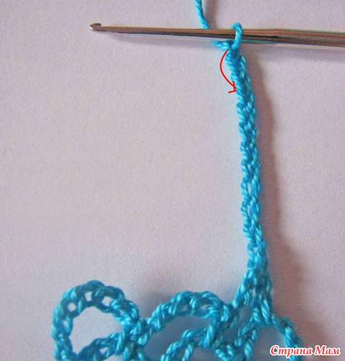 2) В 9ю от крючка петлю провязываем сбн и получается первая арка из 5ти возд. петель.