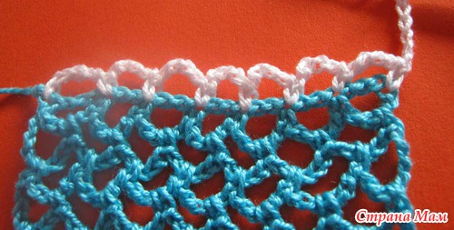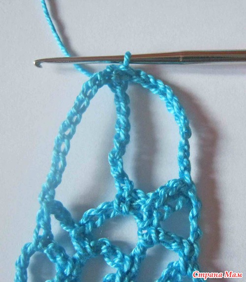 19 ряд заканчиваем следующим обрязом: в последней арке провязываем 3 возд. петли и ссн в основание последней арки предыдущего ряда.