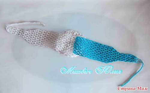 Меняем цвет нити и зеркально вяжем вторую сторону повязки.