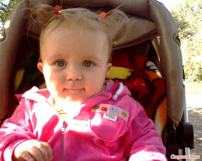да это мы летом еще хвосты делали,то фантанчик она такая смешная с ними а сейчас уже не даётся,все стягивает с головы....тут в годик наш папа покушался ее на лысо подстрич а я не дала....правельно сделала как считаете????