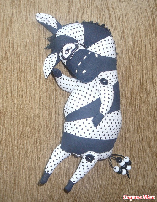 Вот такие зебрики нашились у меня из остатков тканей. Две маленькие 10 см в высоту, трикотажные. Три зебры по 15 см в высоту, ножки на пуговках, двигаются. Читать полностью