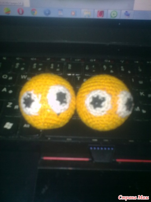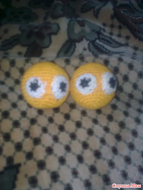 Даже обвязала шарики. Идея была обвязать тенисные шарики, и сделать их в виде рожиц (смайликов)