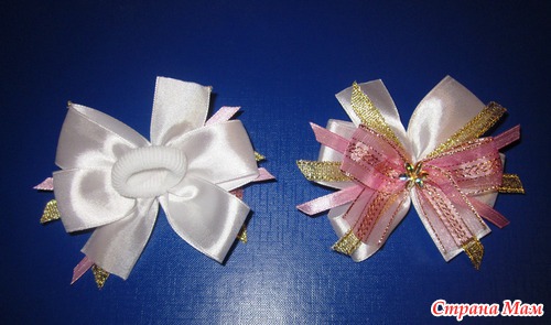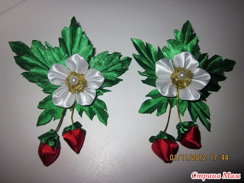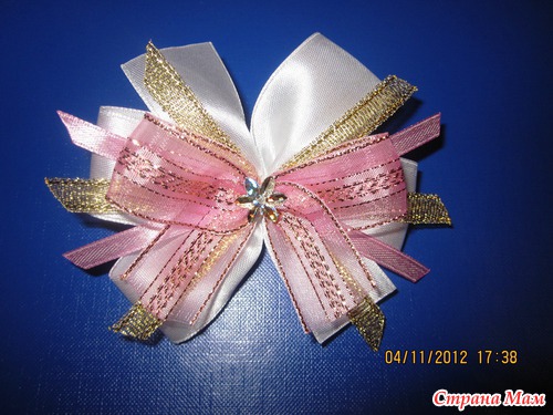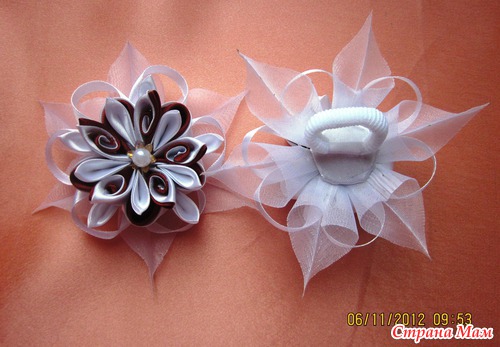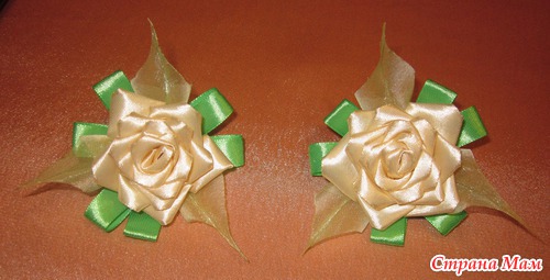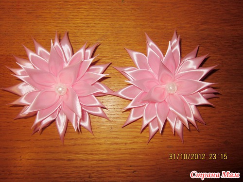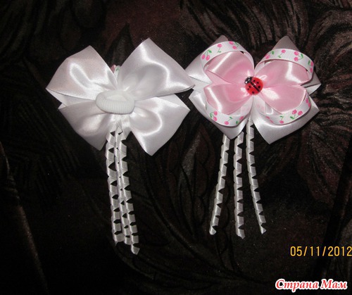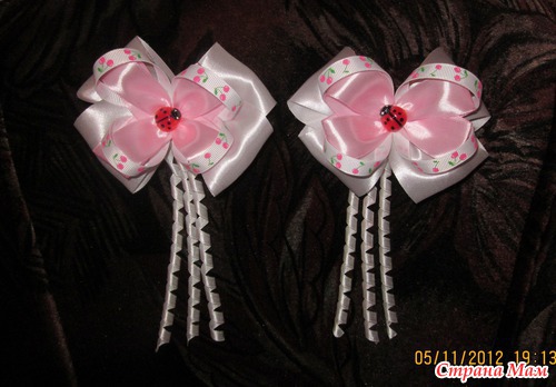Спасибо большое!!! С листиками долго возилась, но результат понравился!! А второе фото... Увидела в интернете цветочек, сделала, но для резиночек он оказался мал, пришлось импровизировать, и получилось то, что получилось!! А бантик (ободочек, я так поняла) делался для пятилетней девчушки, потому утяжелять конструкцию не было смысла ( делать объёмный цветок). Результат заказчице понравился!!