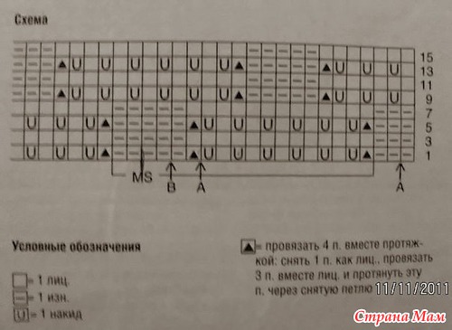 Основной узор: вяз. по схеме 3. Повт. 1-2-й р.