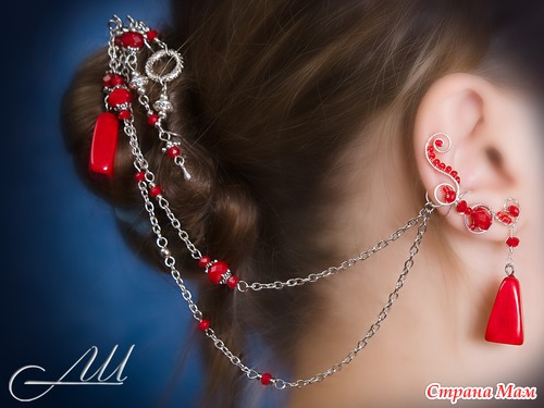 Размер: каффы - около 4 см, длина подвесок - 3,5 см; шпилька - 10 см (украшение на ней около 5 см), длина цепочки от каффа до шпильки - 17 см