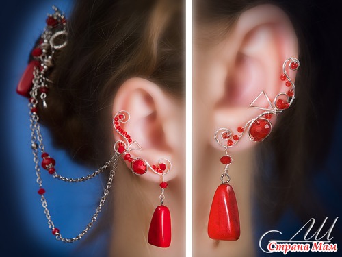 Материалы: Посеребрённая немецкая проволока, прессованный коралл, стеклянные чешские бусины, металлофурнитура под серебро