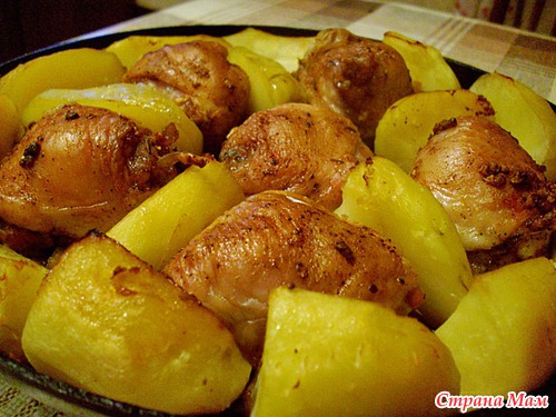 Мое второе любимое блюдо это курица с картошкой.