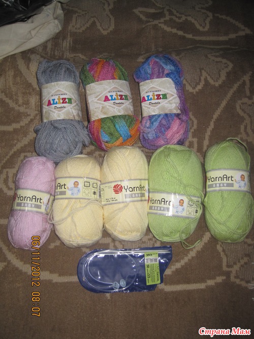а еще мы с Юлей менялись на нитки вязальные и спицы... вот они