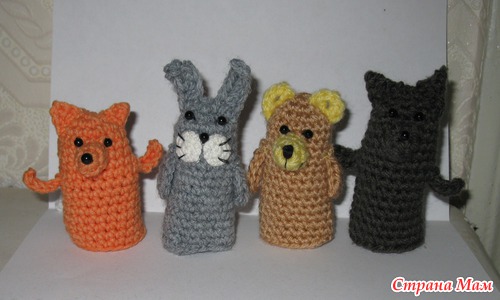 Начала я покупать картонные книжечки с иллюстрациями Щербаковой. И так они мне понравились, что вдохновили меня на создание нового пальчикового театра по иллюстрациям Щербаковой. А так как мне скоро надо поздравлять с днем рождения одного ребеночка, то я решила вязать игрушки в двойном экземпляре. Но так как я натура творческая, то одинаковыми они не получились