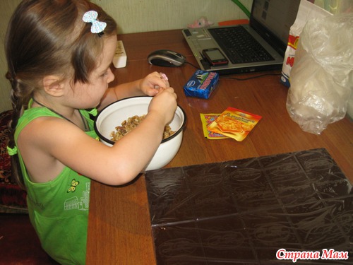 Как и обещала, рассказываю про наше пекарское творчество, а вернее, как мы расходуем шоколадную плиточку))