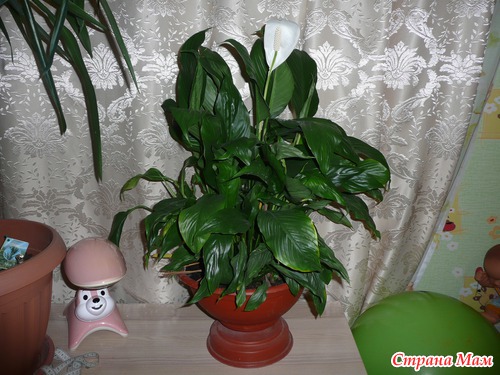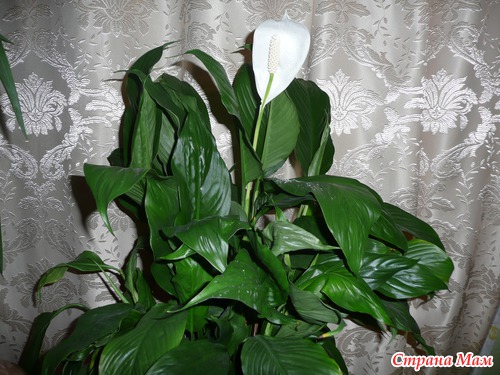 Вот такой красавчик спатифиллум у меня цветет... круглогодично... горшок меняла в начале лета... хотела пересаживать, а он опять зацвел... чем меньше горшок, тем обильней цвет...