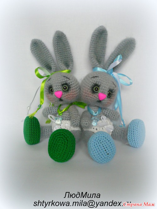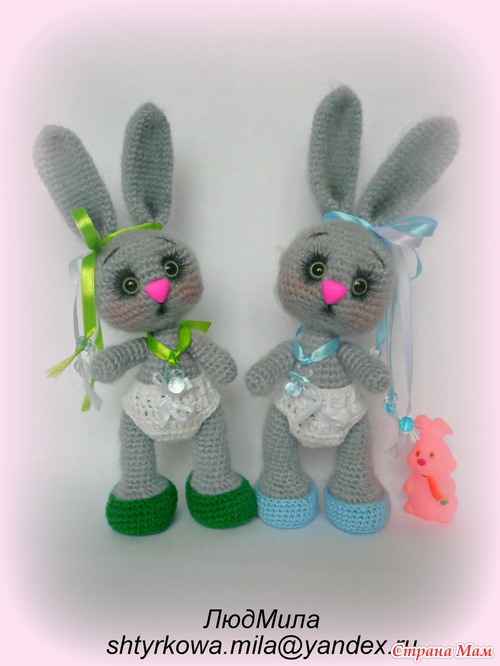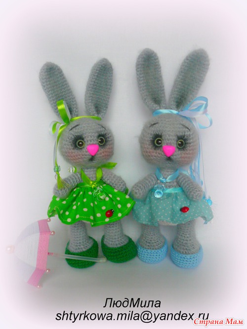 Тэги: зайки, авторская игрушка, вязание крючком, сестрёнки