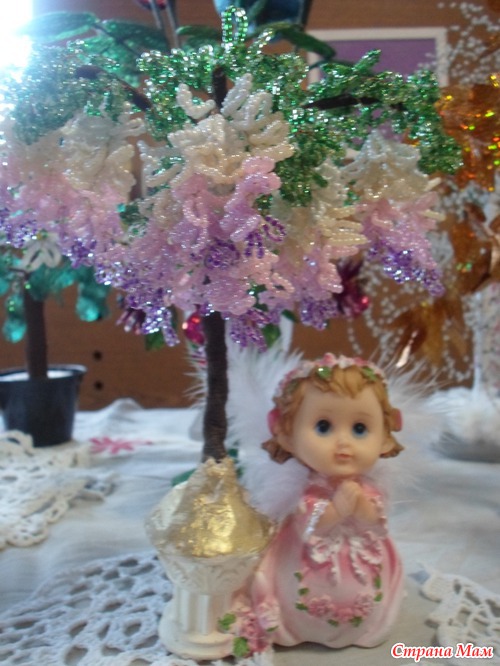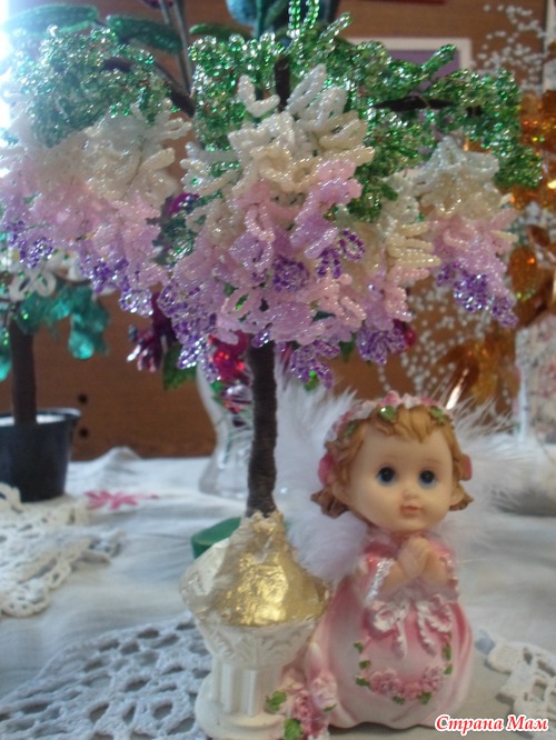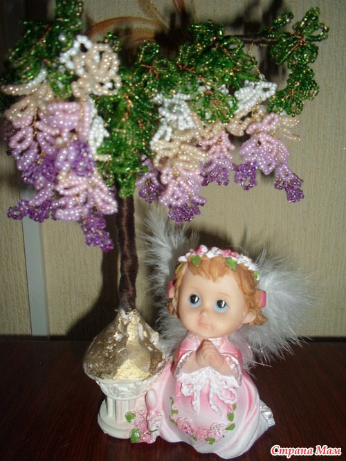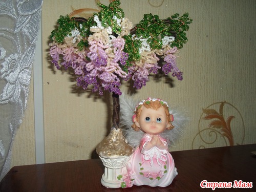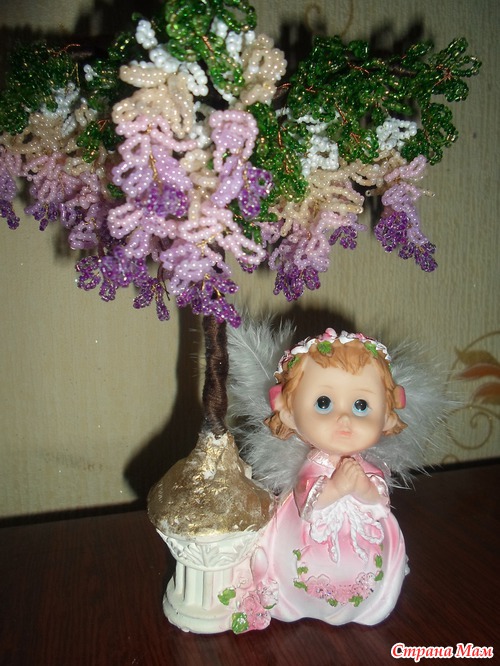 Все любовалась глициниями в интернете и решила сотворить себе красоту Мучила ее месяц: то времени нет, то бисера не хватает, то проволока не подходящая, ну наконец-то закончила Вот такое деревце получилось