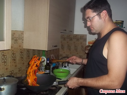 Готовит вкусно, но после него убирать надо часа два ))) он на прошлой неделе готовил. Хотела сфокать какой была после него кухня, но у фотика зарядки не было. Это надо было видеть ))