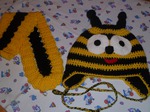 Шапочку вязала вот под такой комбез, настоящая пчёлка получилась.