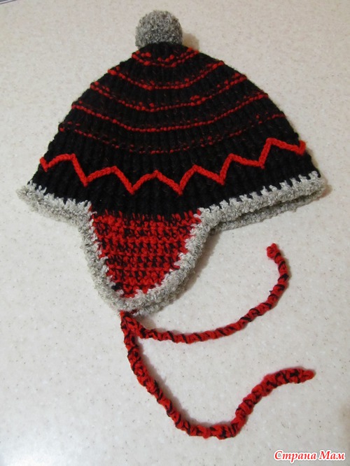 Шапка( которая вязалась мужу, но после стирки оказалась мала) - перешла, с доработкой, сынишке.