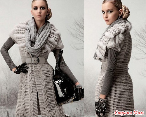 В вязании мехом, чем прямее модель - тем лучше; полочки и спинку лучше выкраивать сразу целым полотном без боковых швов. И оплетать целиком, сначала подогнув низ и планки, где будут крючки, кнопки, пуговицы.