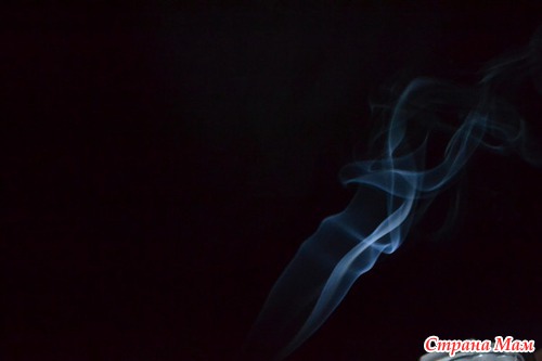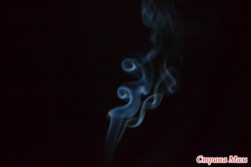 У меня уже и глаза слезились и руки затекали, но она стояла на своём! Хотела научиться фотографировать дым. Извели мы штук 5 палочек вонючек и папу заставила пару сигарет выкурить. Вот итог её трудов.