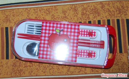 набор столовых приборов. даже палочки есть... теперь ждем того момента когда моей Аринке можно будет кушать суши