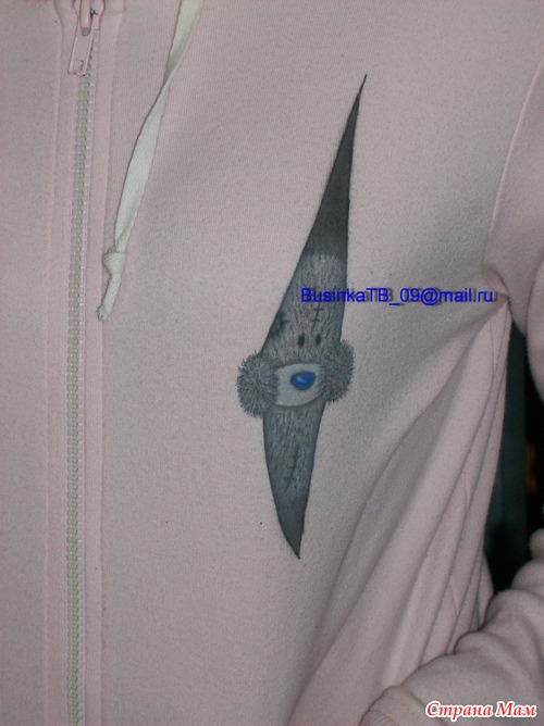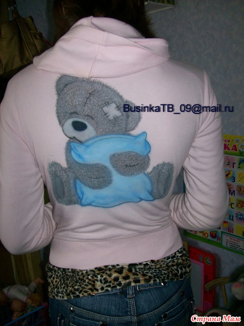 А еще (барабанная дробь)!!! А еще (девоньки, кто ждал хваста), наконец-то хвастаюсь работой мужа! Пока я примерялась и решалась нарисовать мишек Тэдди, за меня сделал это муж. Только аэрографом нанес основной опорный рисунок, остальное - кистью.