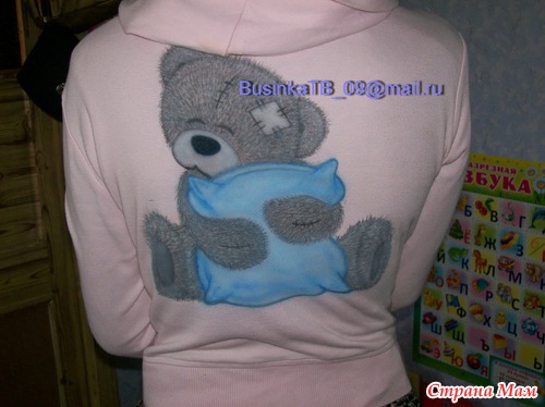 А еще (барабанная дробь)!!! А еще (девоньки, кто ждал хваста), наконец-то хвастаюсь работой мужа! Пока я примерялась и решалась нарисовать мишек Тэдди, за меня сделал это муж. Только аэрографом нанес основной опорный рисунок, остальное - кистью.