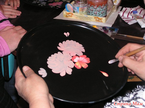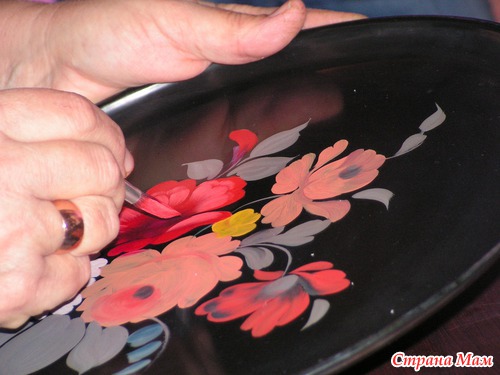 А потом сама художница расписала поднос. Я всегда восхищалась людьми, которые умеют рисовать. Но сегодня я не просто восхищалась, я завидовала