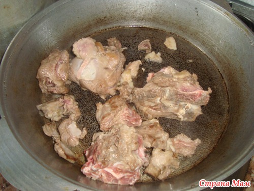 Баранину пожарим в масле, можно в жире, в кюрдюке.